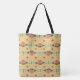 A very chic Tote Bag, with pattern of pink Water Lilies and pale blue Dragonflies, on a sandy yellow background. From a hand-painted paper collage design by Judy Adamson. Part of the Posh & Painterly 'Lily Pond' collection, you can easily customise this pattern by rotating or re-sizing the image tile. This pattern will fit any of the Tote Bag options.