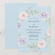 This design features a delicate palette of powder blue, soft pink, and lavender. Hand-painted watercolor hydrangeas and blush roses create an ethereal aesthetic. Lush greenery and eucalyptus leaves weave throughout the blooming arrangement for a serene, springtime feel. The overall mood is one of light, airy elegance, perfect for a romantic spring or summer event.