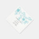 A Magnolia flowers branch decorates this elegant and romantic wedding reception napkin design in a turquoise and white colour scheme. Personalise the custom text with bride and groom names and wedding date.