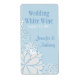Elegant mini wedding wine labels ready for you to personalise with your own information. Made in a beautiful pale blue, with embossed looking graphics of stylised chrysanthemum blooms, on the left side. Personalise the blue and white text for your wedding reception. Great for your wedding reception or your home made wines.