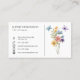 Pale blue White Watercolor wildflower Business Card. The front has the design of a wildflowers meadow with the cardowners name in a script font, the backside has all the essentials of a business card; name, title/company name, address, work phone, e-mail, mobile and webpage. The backside design of a small wildflowers bouquet and butterflies. Easy to Customisable name and text, to make it personal for you.