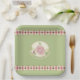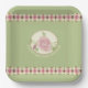 Pale Green and Pink Floral Accented Square Paper Plate