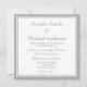 This invitation is elegantly designed with a simple and clean pale grey theme in mind, with multiple fonts adding a typography design that everyone is sure to love. Personalise with your information, or customise it by clicking the "customise" button to change any of the elements. Back of invitation is a matching shade of pale grey.
