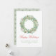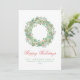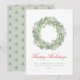 Pale Light Green and Pink Wreath Christmas Holiday Card