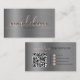 Pale Orange Metallic Brush Steel Script QR code Business Card