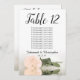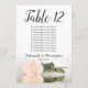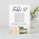 These beautiful table number cards will make it easy for your guests to find their seats at your wedding reception. They feature a simple yet elegant design with script calligraphy lettering and a single long-stemmed pale peach or very light orange coloured rose lying on its side reflecting in water. The card includes a seating chart with 10 names. There is also space for the couple's names and wedding date. This card is available in a variety of sizes and is larger than our standard table number cards.