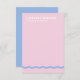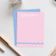 A wavy line in pretty pale pink looks chic on a solid ground of powder French blue with simple editable text for easy customisation making these flat note cards a design forward choice for any creative's business stationery.