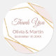 A classy design featuring the text in dusty rose on a pure white background framed by a gold glitter geometric shape with pale pink accents. By clicking the customise link, you can change the names and date. This is part of an elegantwedding suite that can be fully personalised.