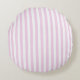 Pale pink and white candy stripes round cushion