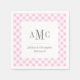 A pattern of pale blush pink gingham plaid frames a traditional three letter monogram on this personalised, paper cocktail napkin. Easily edit all text and you can even change the background colour.