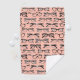 This golf towel features a variety of different eyeglasses and glasses frames in black and white on a pale pink.