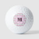 This custom ladies personalised golf ball features green and pink argyle with a customisable monogram on a pink background. It's a stylish, cute gift for a golfer. It's a useful present for your mum, sister, grandma, or any lady whose hobby is playing golf.