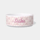 Show your love for your precious four legged family member with this pretty bowl that features a pattern of pale pink dotted hearts. Easily add your pet's name in the box provided.