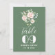 Pastel pink roses bouquet watercolors illustration for a wedding table number—double-sided with white and olive-green reversible colours.