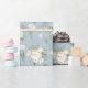 Pale pink roses on a blue background is the perfect wedding gift wrap your bride will love