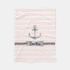 Girly fleece blanket with grey watercolor anchor on a light pink & white striped background. You can also personalise the design with custom text under the anchor.