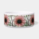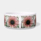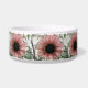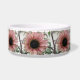 This awesome pet bowl features a beautiful photograph of a pale pink sunflower. The sunflower is naturally pink and the petals have a pale pink outer ring and a darker pink inner ring. The middle where the seeds are is black. This photograph was taken in a garden.