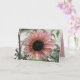 This get well soon card features a beautiful photograph of a pale pink sunflower. The sunflower is naturally pink and the petals have a pale pink outer ring and a darker pink inner ring. The middle where the seeds are is black. This photograph was taken in a garden.