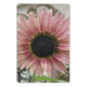 This awesome mini clipboard features a beautiful photograph of a pale pink sunflower. The sunflower is naturally pink and the petals have a pale pink outer ring and a darker pink inner ring. The middle where the seeds are is black. This photograph was taken in a garden.