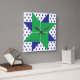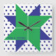 A quilt block pattern in soft green, blue & white colours brings this old fashioned art into the 21st century. This design is only suitable for the square clocks.