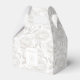 Pale Taupe Monogram Crest Wedding Favour Box: Vintage-inspired line art monogram crest with elegant typography. Add first initials for a custom wedding crest. Features a chinoiserie floral pattern of peonies for timeless sophistication.