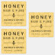 Modern honey labels for your apiary in pale yellow with a faint honeycomb pattern, clean fonts, and a modern bee icon.
