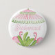 This Bachelorette Weekend "Bridesmaid" button has a preppy design featuring pink and green Palm Beach styled cabana, pool chairs and umbrellas surrounded by palm trees.