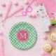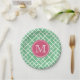 Palm Beach Green & Pink Geometric Bamboo Monogram Paper Plate