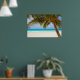 A photograph of a solitary white sandy beach framed by a palm tree. The perfect holiday place to relax and unwind. This image is available on a variety of other products, just click the link below the photo near 'About this Design'.