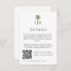 This simple and elegant tropical wedding details enclosure card has a refined Palm Beach style with a modern, minimalist sensibility. A custom royal palm tree monogram anchors the design, featuring the bride and groom’s initials gracefully placed on either side of the palm for a look that feels both personal and polished. Clean typography and airy spacing with a white background creates an upscale aesthetic that blends tropical style with contemporary sophistication. Perfect for a coastal or destination celebration, this design sets the tone for a stylish, sun-kissed wedding where effortless luxury and thoughtful details take center stage.