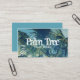Add your personal contract information to create your own business cards great for tourism industry in tropical or beach areas where there are palm trees. The image features photo of palm fronds blowing in the breeze. Dominant colours are muted blues and greens. Photo business card.