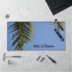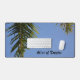 This tropical photographic desk mat has just a hint of the Tropics with palm fronds against a beautiful clear blue sky. Personalise with your Name or your own text. Plenty of space and options to customisation.