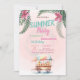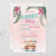 These invitations feature palm leaves with tropical flowers and ice creams on pink background. This invitation is easily customised for your event by simply adding your details.