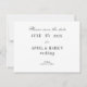 Palm leaf framework in green and golden beige to catch attention. Make sure your guests are excited when reminded to mark their calendars for this most important date. Easy to use postcard format with typography to match the wedding stationary suite.