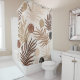 palm leaf line art seamless pattern on earth toned scribble polka dot background. Hand drawn curved palm leaves silhouettes. repeat illustration, summer beach design