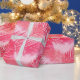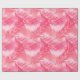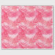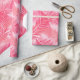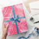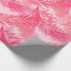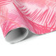 Wrapping paper in a print of overlapping palm leaf silhouettes, in shades of deep coral pink and peach, against a pastel shell pink background