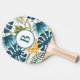Tropical, lush green and blue palm tree leaves. With a large golden pineapple.  White elegant background.  Add your own monogram letter.