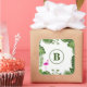 This design features a green palm leaves background with a monogram in the centre. Add your own initial to this product to customise it.
