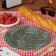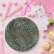 A moody, exotic pattern featuring hand-drawn palm leaves and ripe oranges on a dark background. Perfect for adding that tropical je ne sais quoi to clothes, home decor and accessories.