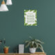 The design features trendy tropical green palm leaves on a simple clean white background with a coordinated border and wording.