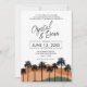 Palm trees and mountains set the stage for your modern Palm Springs or Palm Beach themed wedding. Personalize with your event details.