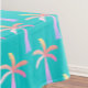 This Palm Springs Turquoise Blue cloth tablecloth with pastel palm trees is so much fun! Playful multicolor soft watercolor hues have a real beach island vibe, even if you're not near the ocean. Midcentury modern style.