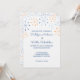 These custom printed wedding invitations feature a fun retro vibe with a Mid-century Modern style design. Atomic asterisk or snowflake shapes decorate the top and back of these invites in shades of blue and orange for a fresh and fun Palm Springs look. Use the template fields to easily personalise these with your information. Have more information you need to include? Select the CUSTOMIZE option to add additional text to these invites.