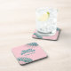 Throw a birthday party by the pool with these modern "Palm Springs" inspired pool party coasters. It features a pink patio tile, palm leaves, and vintage-inspired typography in teal.
