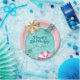 Throw a birthday party by the pool with these modern "palm springs" inspired pool party paper plates. It features a pink patio tile and an arch-shaped swimming pool with realistic, inviting water, palm leaves and umbrellas.