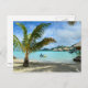 Palm tree and overwater resort postcard