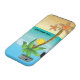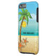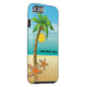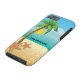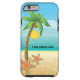 Palm tree and starfish tropical scenery iPhone 6 case featuring a tropical scenery: a palm tree with coconut on a sandy beach with starfish, blue sea/ocean water and the sky with the sun and clouds. It is a template and you can change your text or delete it.