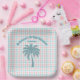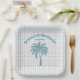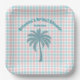 Palm Tree Azure Pink Chequered Bridal Shower Paper Plate