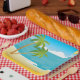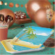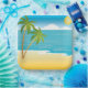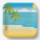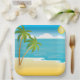 A scenic view of a palm tree beach with a bright sun. This design looks really effective on these Paper Plates