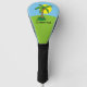 Cartoon illustration of a palm tree. Custom background colour. Custom text.